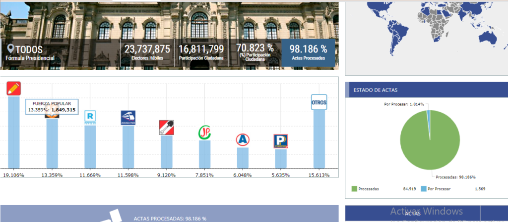 234,040 votos de diferencia entre Keiko Fujimori y Rafael Lopez Aliaga al 98.186% del computo ONPE.