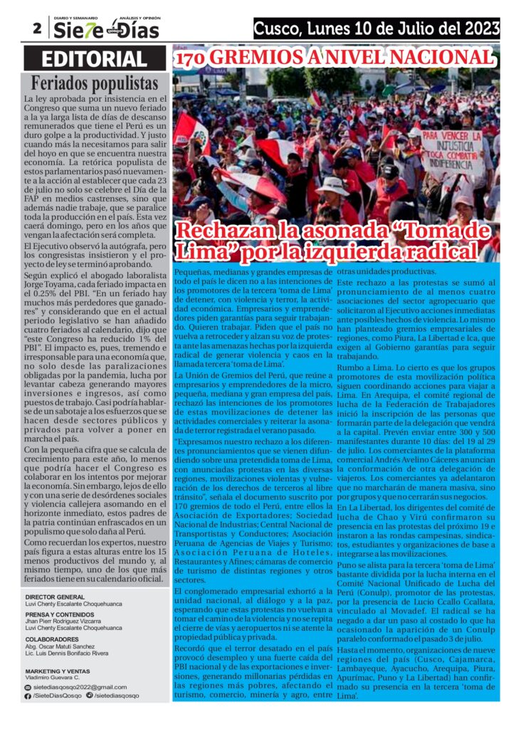 Deportes Economía Local Nacional Policial Política RegionalSIETE DÍAS QOSQO Edición Jueves 13 de Julio del 2023 by Adminjulio 12, 2023julio 12, 20230817 Share0 13 07 2023 SDQDescarga