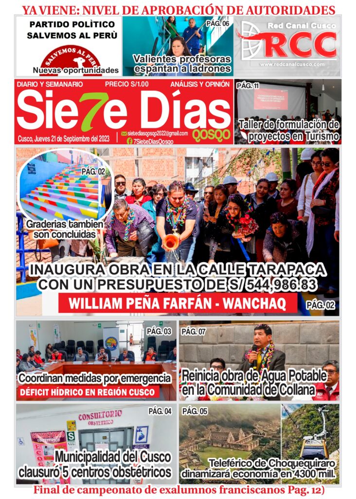 Deportes Economía Local Nacional Opinión Política RegionalSIETE DÍAS QOSQO Edición Jueves 21 de Septiembre del 2023 by Adminseptiembre 25, 2023septiembre 25, 20230684 Share0 21 09 2023 SDQDescarga