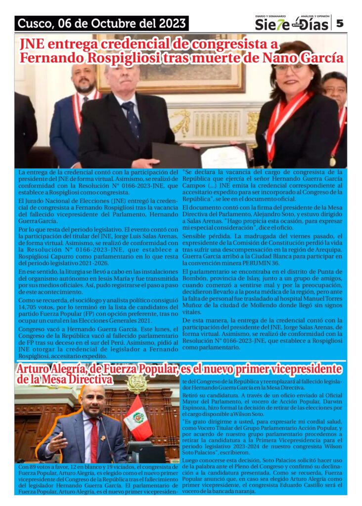 Deportes Local Nacional Opinión Policial Política RegionalSIETE DÍAS QOSQO Edición Viernes 06 de Octubre del 2023 by Adminoctubre 6, 2023octubre 6, 202301156 Share0 06 10 2023 SDQDescarga